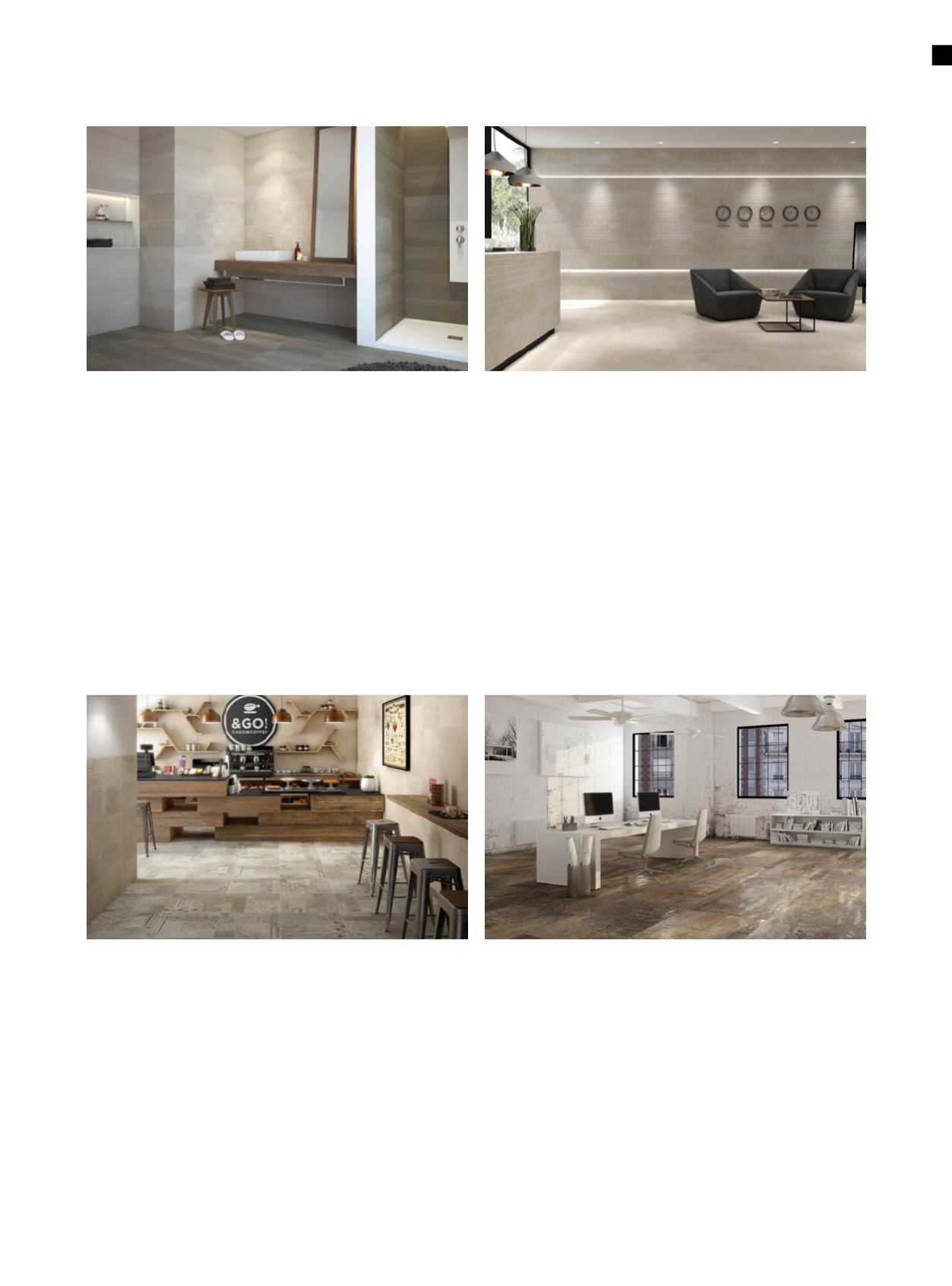 White, Beige, Grey und Black. Die dezenten Töne verleihen Naturstein-Optik. Als