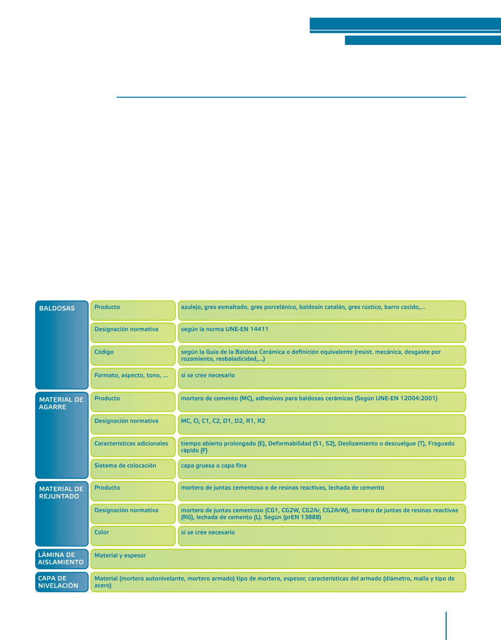 baldosa cerámica, material de agarre, material de rejuntado, en su caso