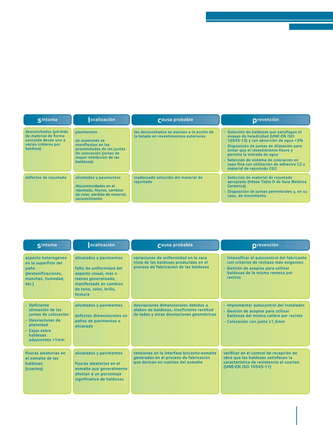 daños debidos a una inadecuada selección del producto o la técnica de colocación (continuación).