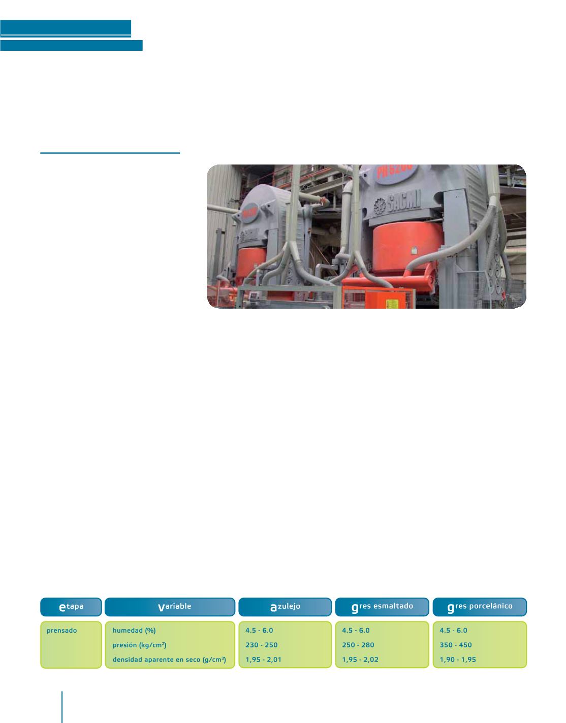 ción del prensado son las siguientes: